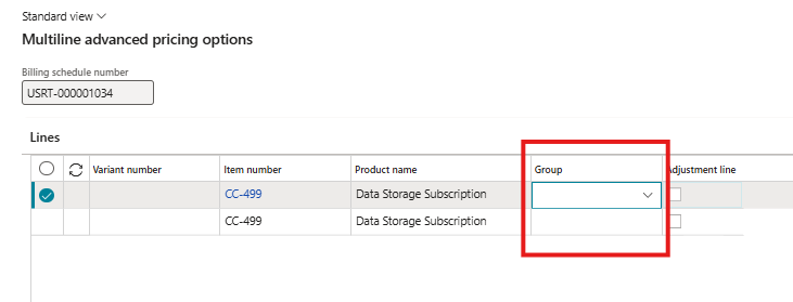 Under the Billing Schedules tab, click Multiline Advanced Pricing Options.