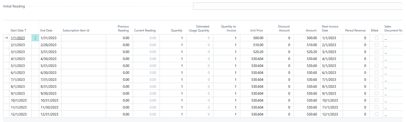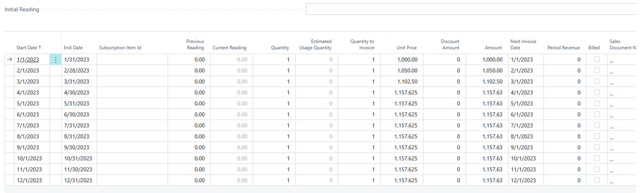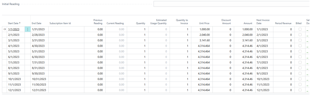 Example for a Billing Schedule (Start: Jan 2020, Annual):