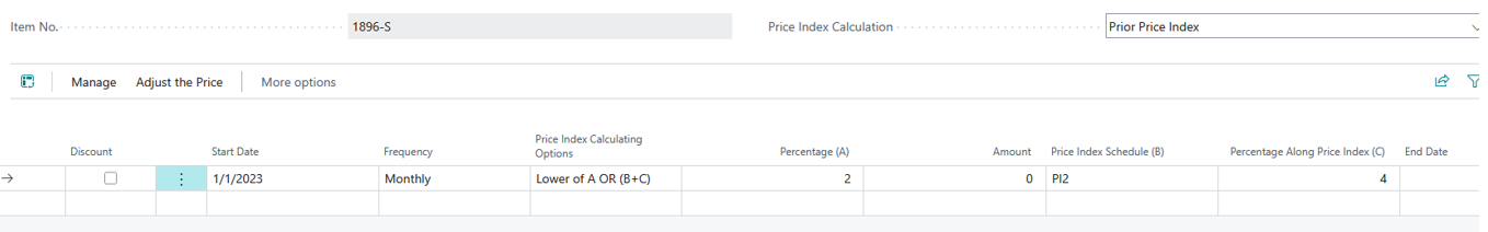 The system uses the higher value between the standard Percentage and the combined value from the Price Index Schedule plus its associated percentage. Since the percentage index is not applicable in this case, the calculation proceeded as follows: