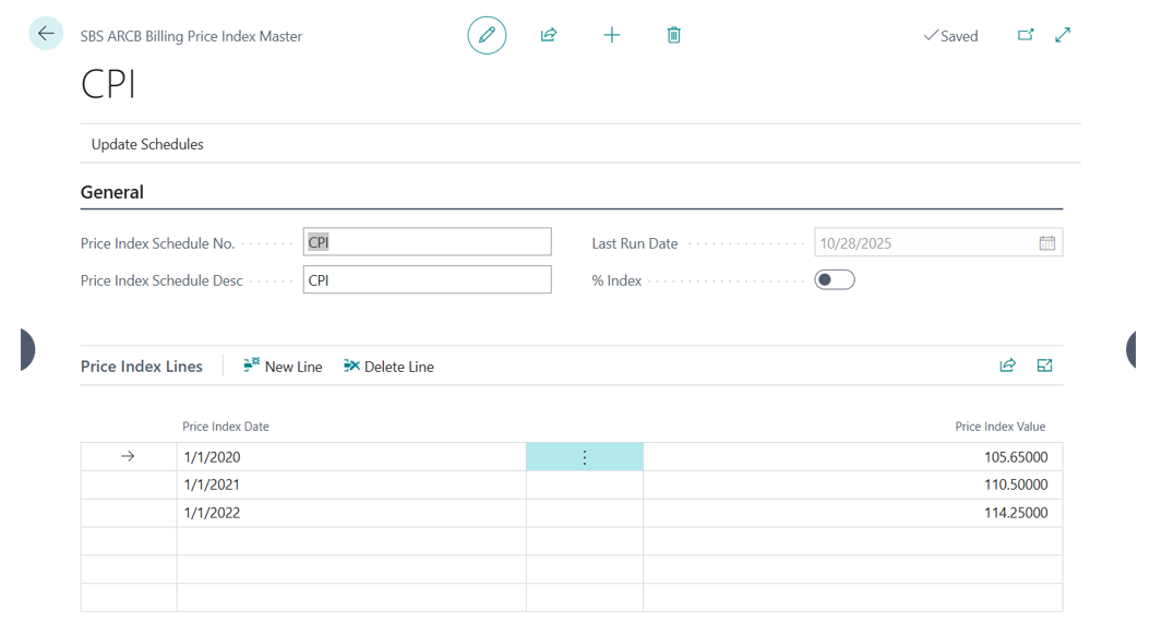 Assume that before the Jan 2026 invoice the CPI parameters of Contract A are changed as follows: