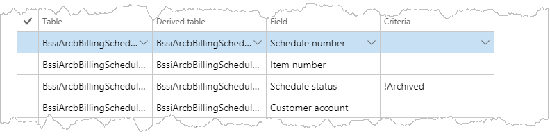 - On the line for the Schedule Status, by default the Criteria cell has the value of !Archived. Delete the Criteria, and select OK.