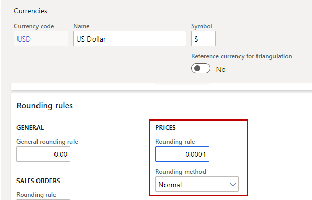The rounding rule for the unit price and discount values for the billing schedules is based on the Prices rounding rule on the on the Currencies page in Microsoft Dynamics 365 for Finance and Operations. View example.